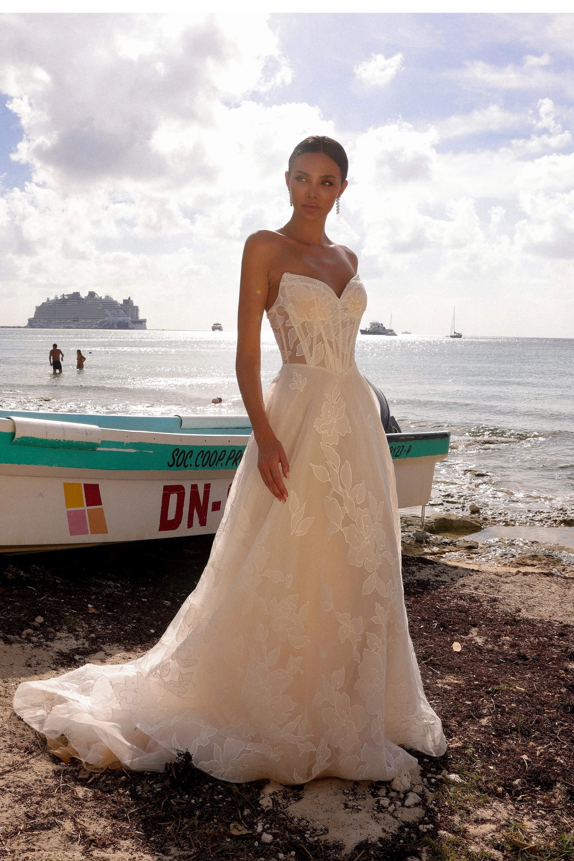 Details:Exposed Boning, Floral Appliqués, Lace